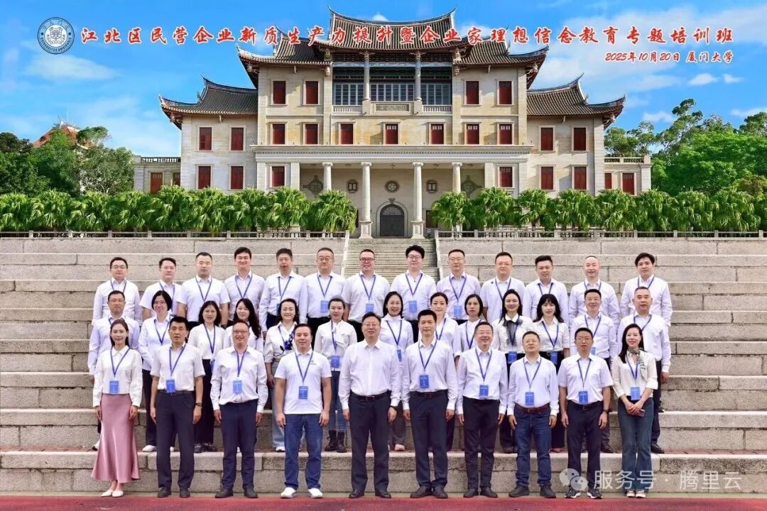 为深入学习贯彻习近平总书记关于发展新质生产力的重要论述,助力江北区民营经济高质量发展,10月19日,江北区民营企业新质生产力提升暨企业家理想信念教育专题培训班在厦门大学正式开班。来自江北区的40余名优秀企业家代表齐聚一堂,共赴一场思想与创新的学习之旅。重庆腾里云信息技术有限公司董事长、江北区智能科技发展商会副会长秦愿先生参加本次培训。